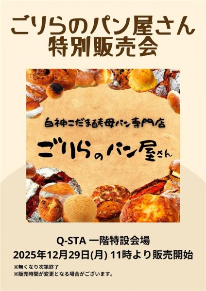 「ごりらのパン屋さん」が、Q-STAにやってきます!