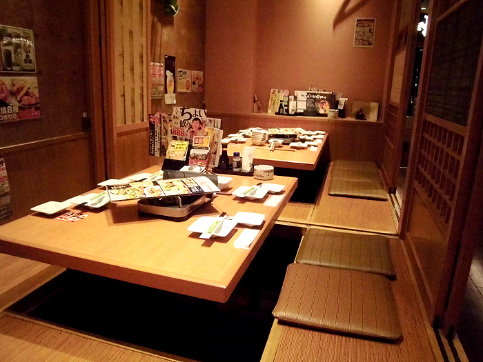 玄関の向こうには、洗練された和の空間。ゆったりと個室感覚でおくつろぎいただけるのが「魚民」。